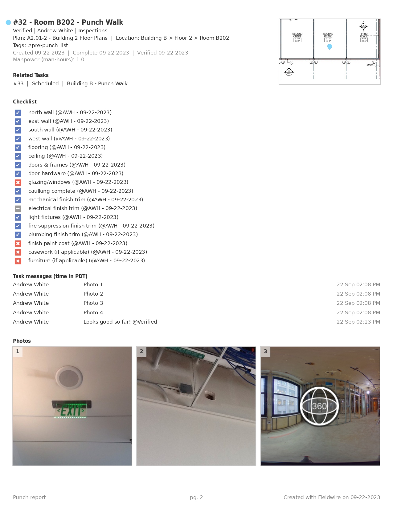 The report you see above was created using one task. The more information in your tasks, the more robust your reports. You can even include copies of the referenced plans at the end of your reports.