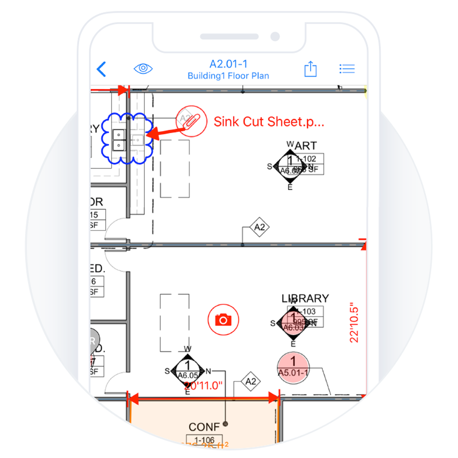 Our blueprint management system automatically reads the name off the plans and versions the sheets. It also finds navigation callouts and hyperlink them in the iPad construction app so that you don’t have to flip endlessly through your floor plans. Better yet, as soon as your floor plans are ready, the iPad app will synchronise with the master set keeping you always up to date.