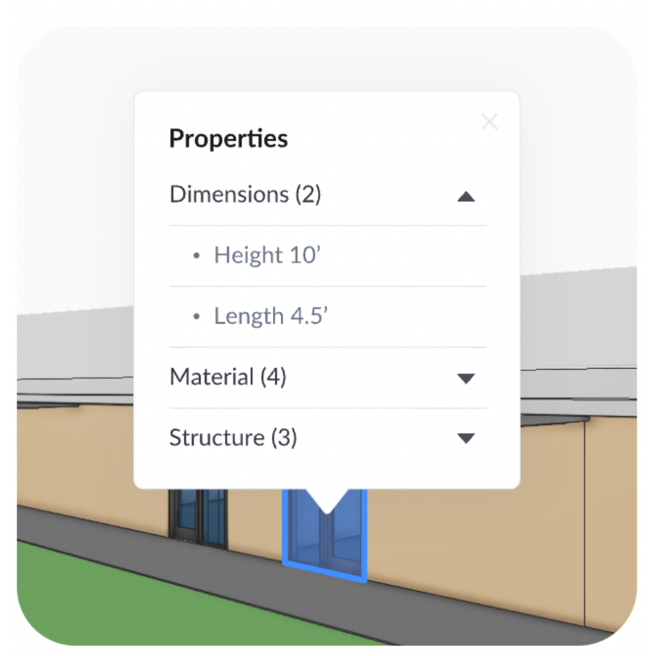 Make more informed decisions and eliminate back and forth questions by accessing properties associated with specific objects. With one click, Fieldwire’s BIM viewer gives you insights like material, height, and more.