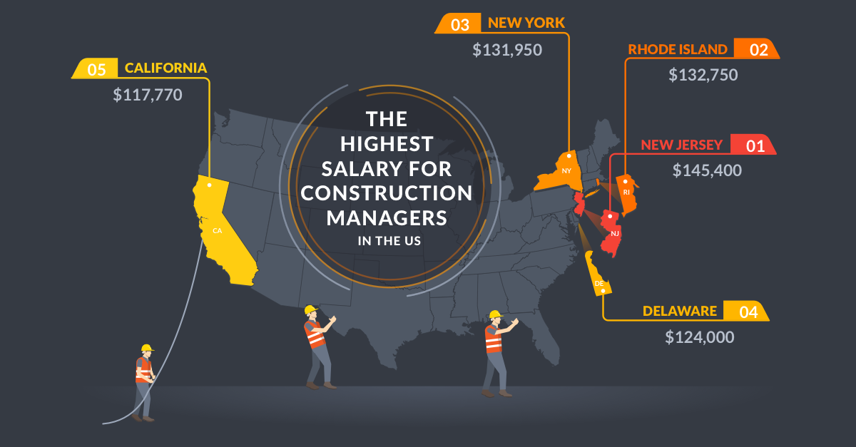 - New Jersey; 6,140 employed construction managers; $145,400 per year.