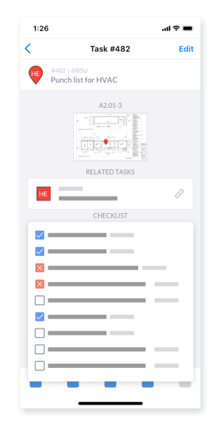 With custom checklists, specialty contractors save time and ensure consistency as they track project progress. Whether you’re preparing for QA/QC, inspections, punch, or any other repeatable process, you can tailor checklists to your specific requirements and then re-use for standardization across all your projects. And since each checklist is built into a Fieldwire task, you'll always have visibility into locations, progress, and questions all in one place — helping you and your team stay ahead of any hiccups and manage the process efficiently.