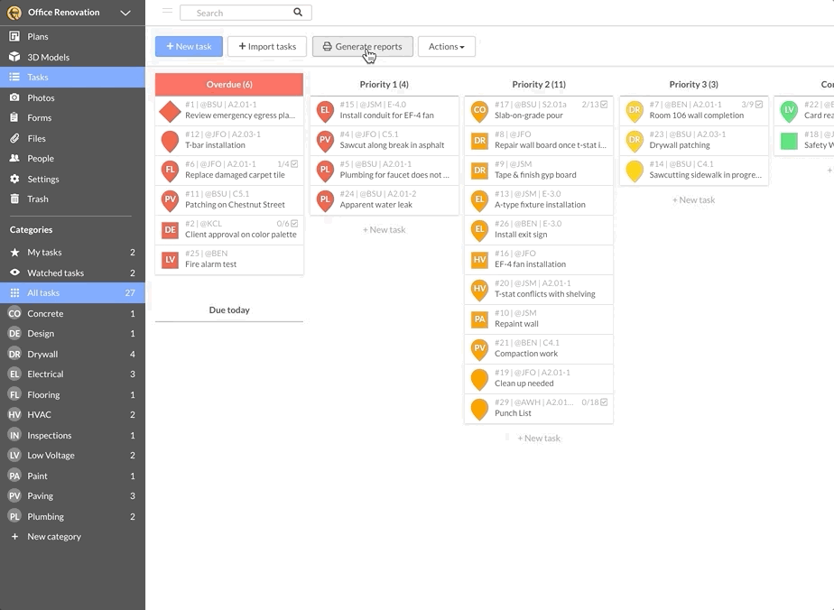 Clean and concise construction task reports help Fieldwire users save time, show progress, and keep stakeholders updated. Reports can even be pre-configured once and sent out automatically every week or month, saving more time for the people responsible for sending out reports. With Fieldwire’s task management app, anyone can share daily progress reports, punch lists, and site observations/closeouts with all project stakeholders, displaying the particular tasks and task attributes relevant to each. Discover how to properly set up tasks to ensure they capture the most relevant information when generating reports.