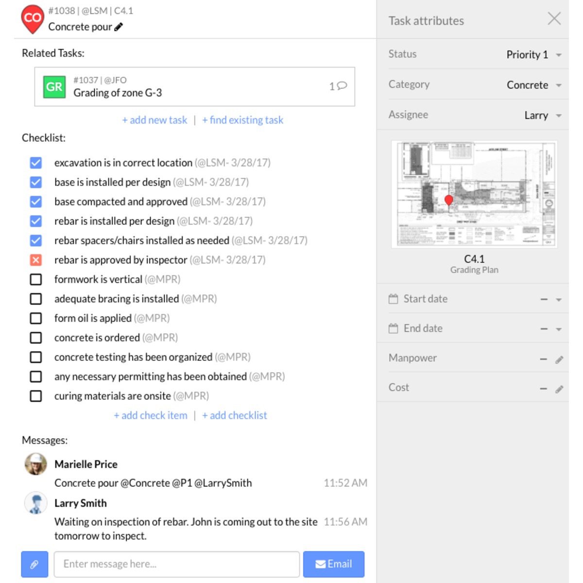 There are a lot of different groups involved in heavy civil work. Whether it’s independent inspectors, geotechnical engineers, or civil designers, there’s always going to be some coordination necessary to make sure these third parties can verify the work is being installed per design. Fieldwire makes it easy to track when inspections take place via tasks, photos, dated notations, and the ability to sign off electronically using our Scribble task tool. Documentation is the name of the game, so there’s never any confusion or uncertainty about the status of the project.