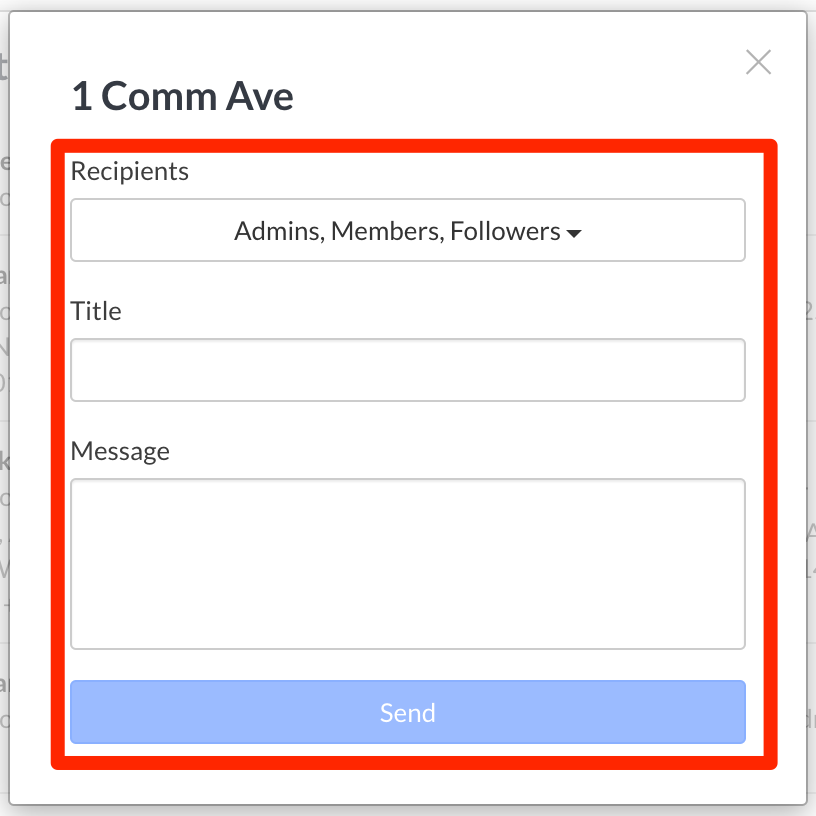 - Select who you'd like to receive notifications, add your title, type your message, and hit send. Everyone on the project will receive the notification via email and in their personal notification tab