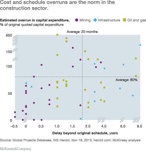 Construction project cost overrun has become so common that they're basically expected in the industry—largely due to over-budget and over-schedule construction projects. In fact, worldwide management consulting firm McKinsey & Company estimated in 2016 that large construction projects are typically completed 80 percent over budget and take 20 percent longer than originally scheduled.
