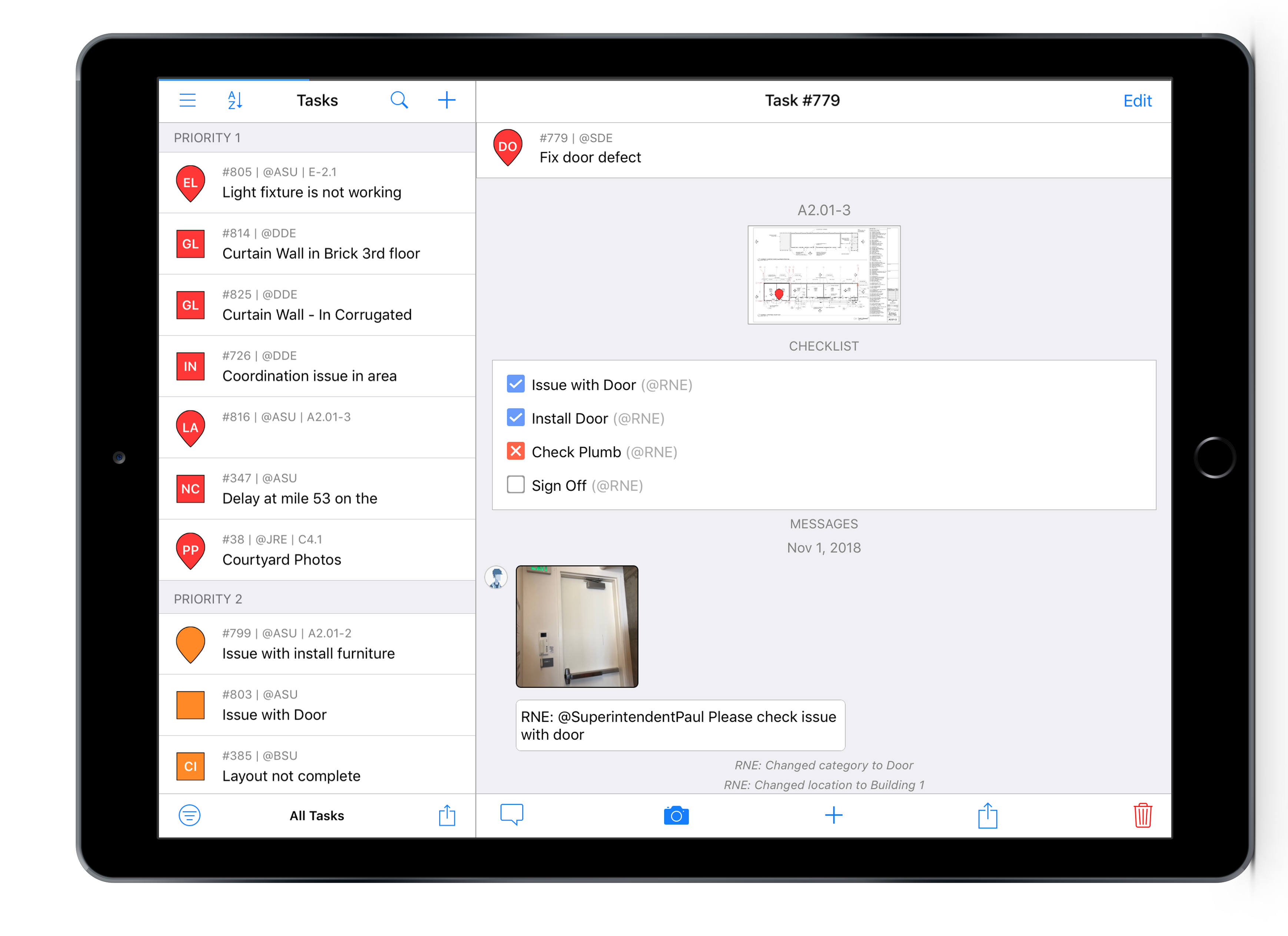 Paper drawings in the field are completely replaced by digital drawings. Questions that arise are easily asked directly on the digital drawing that is being shared and viewed by everyone. Now everyone, from the field to the office, from the construction team to the design team, can see a question has been asked. The question is assigned to the appropriate party who provides the answer. Not in a letter or an email, but directly on the digital drawing. Now everyone sees the question, and the answer, and they are forced to see it right on the construction drawing that they’re referencing in the field.