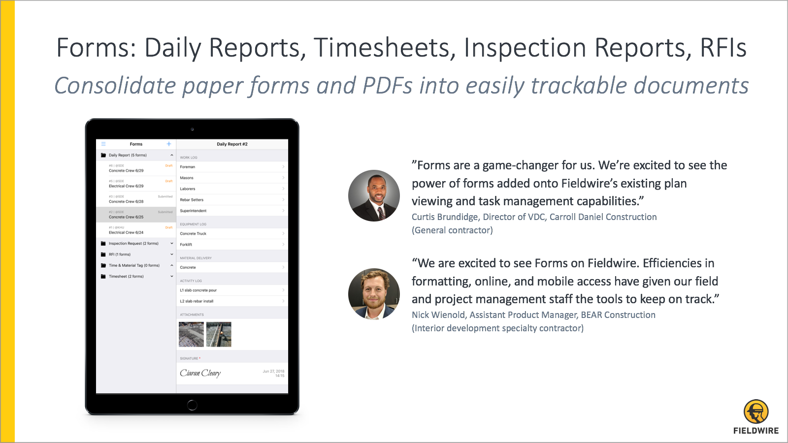 When you use Forms in Fieldwire, all of your major disparate paper forms get consolidated into our easy-to-use platform. They’re now easier to complete, and you get all the benefits of our transparent tracking of who did what, when, and why. Our webinar on August 8th with Stéphane Denerolle, the Director of Product Management for forms, will walk you through the new solution.
