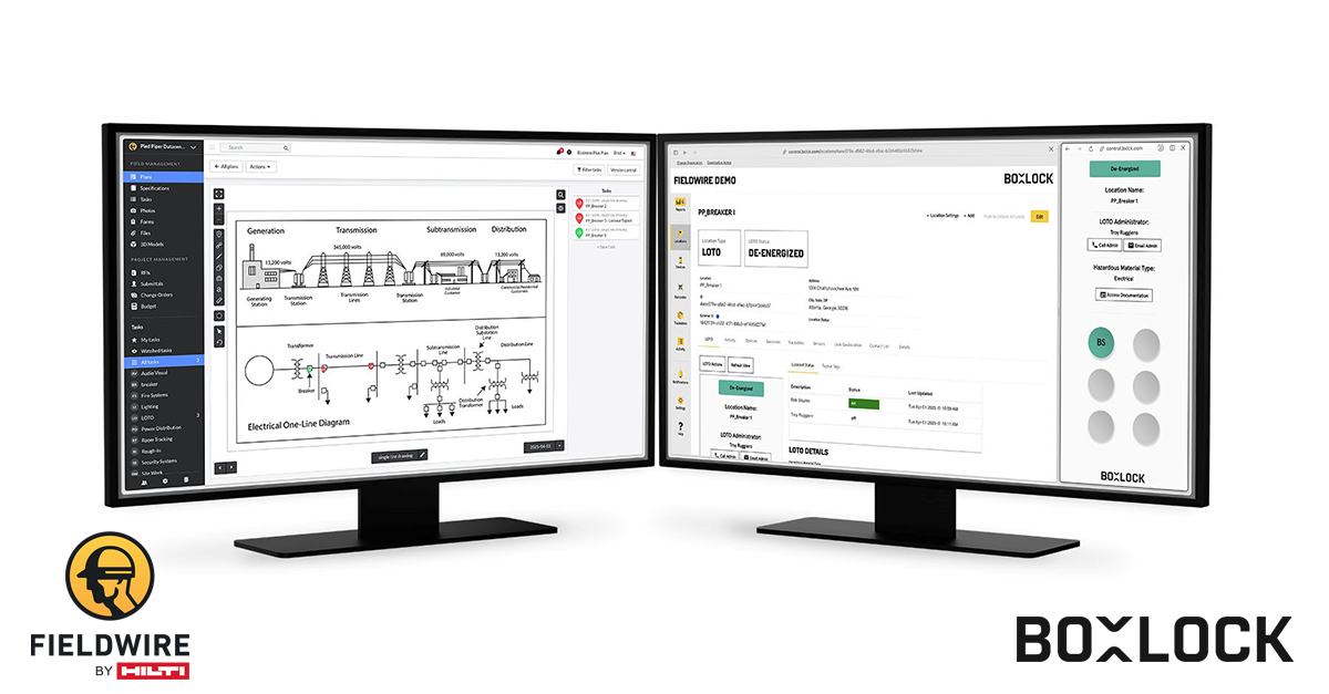 Fieldwire by Hilti and BoxLock introduce real-time integration for lockout tagout (LOTO) on single-line drawings