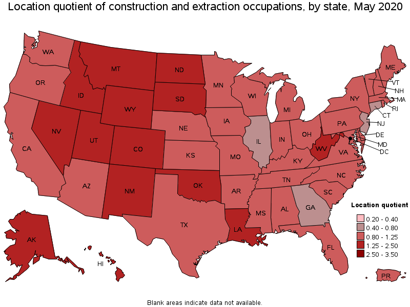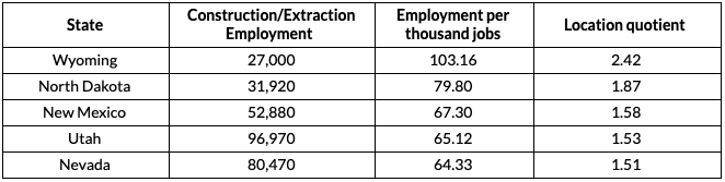 States with High Concentrations of Construction Jobs