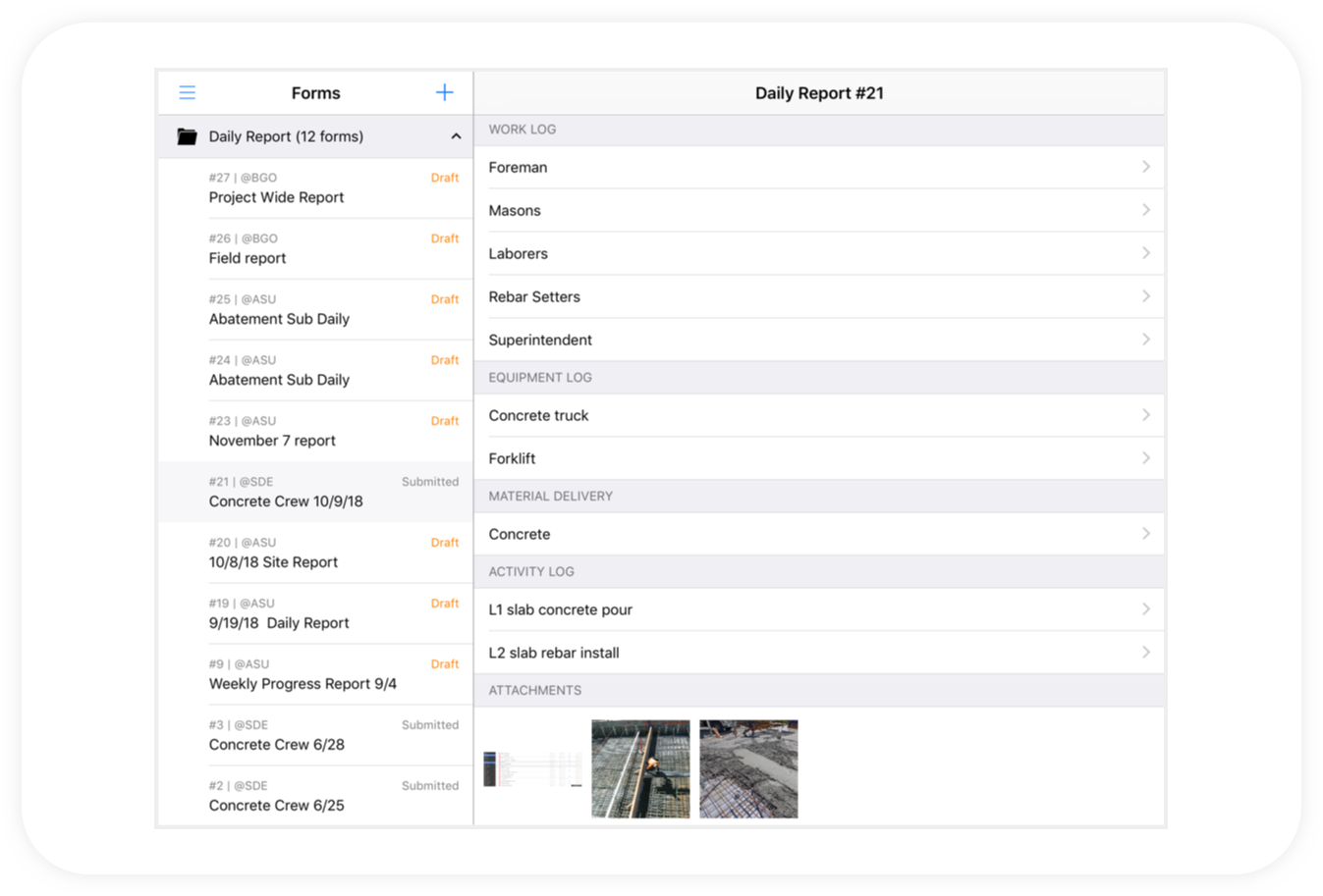 With the right construction app in hand, daily reports should not be tedious or time-consuming. Because, a field management app like Fieldwire, allows you to build, edit, and submit your daily’s from any mobile device in the field. In just a few minutes, you can download and send daily construction reports to other project members — significantly reducing busy work back in the office.