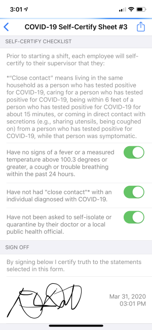 Créez une liste de contrôle de santé « auto-certifiée » pour vos employés sur site