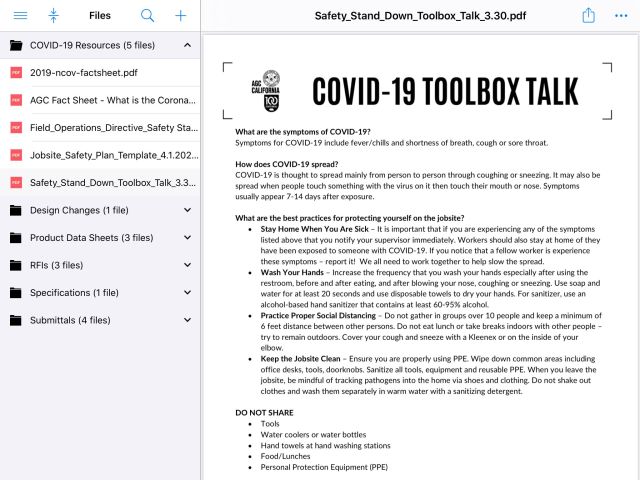- By posting critical information like RFIs, submittals, and product data sheets, to name a few, across all mobile devices and tablets in the field, you are ensuring your team has the right information to go out and build without any paper handoffs.