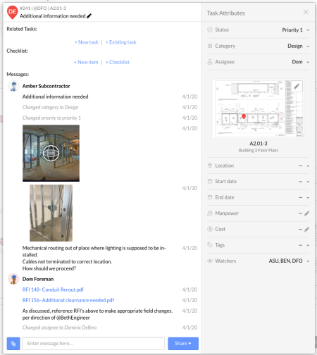 With even less facetime on the jobsite, it’s become more important to make sure that everyone has access to the documents that move projects forward. RFIs are critical to distribute information (photos, videos, site details) between staggered shifts on the jobsite and engineers and architects who are likely working remotely.