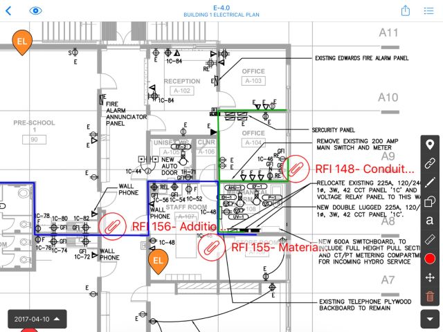 To better distribute information and allow for more time on-site to be spent productively, we recommend customers post RFIs directly to plans.
