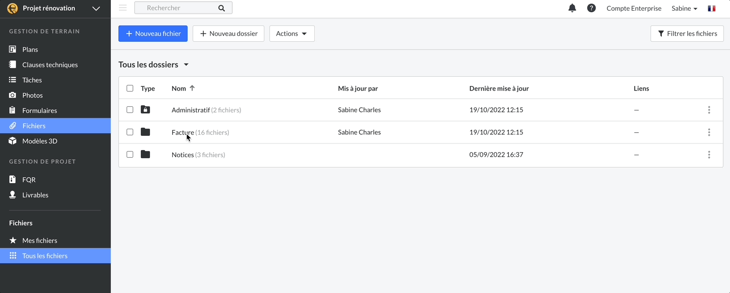 Des dossiers d'appel d'offres à vos reçus, organisez tous vos fichiers dans des dossiers, et désormais des sous-dossiers. Ainsi, vous et votre équipe pouvez retrouver facilement tous les documents nécessaires.