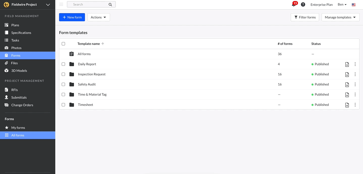 La suite di gestione progetti di Fieldwire offre ora la possibilità di creare varianti in corso d'opera per calcolare automaticamente i costi, tenere traccia dello status dei progetti e monitorare i progressi fino all'approvazione. Scopri di più sulle varianti in corso d'opera sul nostro blog.
