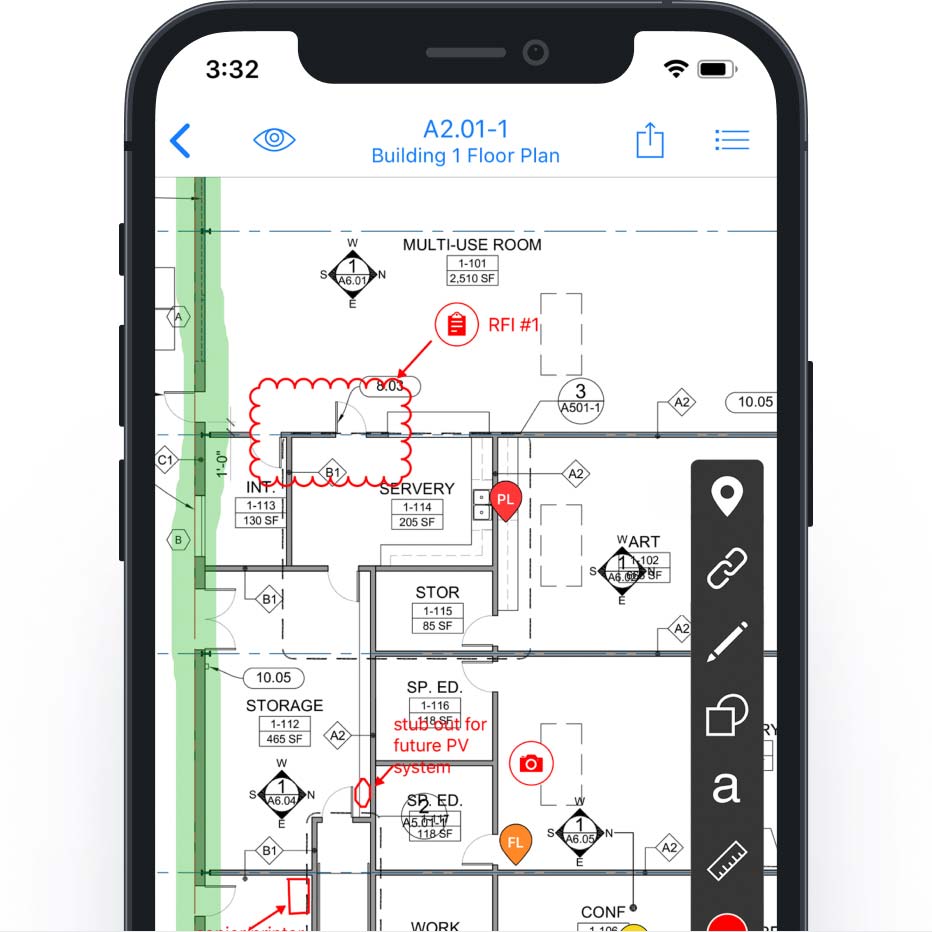 Record your markups and as-builts with easy-to-use mobile editing, even when offline. Verify with photos and videos.