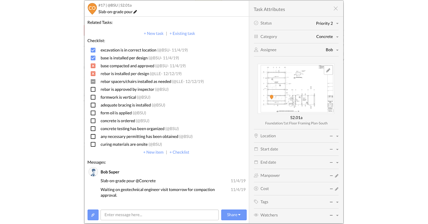 You can even create what we call "Related tasks" so that one trade knows when their work directly affects another’s.