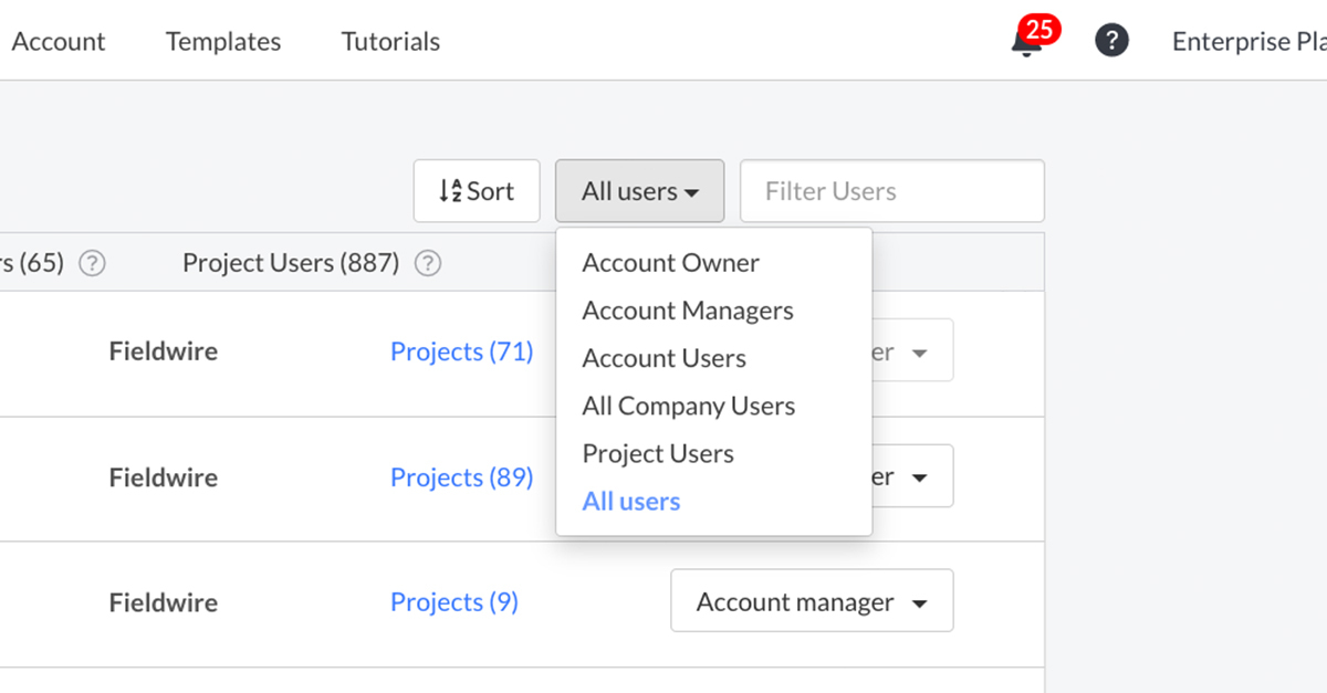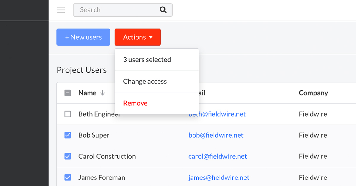 Here at Fieldwire, we’re constantly looking for ways to improve your experience with the Fieldwire platform. We heard from a few customers that the People tab on both the Project and Account level was limited in terms of sorting, filtering, and searching. With this in mind, we’ve made some changes that will allow you to do so much more with the People tab, including the ability to perform bulk actions!
