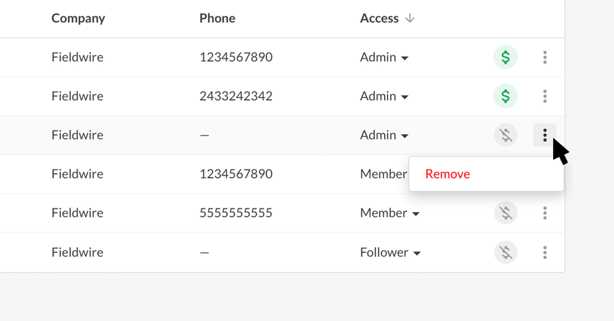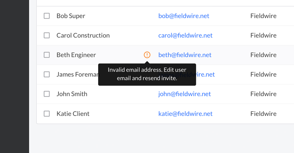 We’ve introduced a new icon system so you can easily see important information about each team member, including whether or not they are a paying Fieldwire user and if there was an issue with their Fieldwire invitation (an email address was incorrect on the invite, for example).