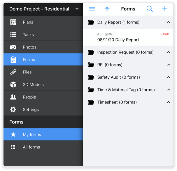 Now, when you tap the Photos/Forms/Files tabs, you’ll see a secondary menu navigation — for example, when viewing Forms, you can now select either “My forms” or “All forms” in the secondary menu.