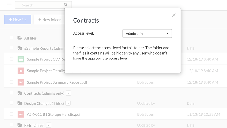 Did you know that you can hide files within folders from certain users? From the Files tab, simply select the drop-down menu to the right of the pertinent folder, then select "Edit Folder Access.” This will bring up a pop-up menu where the project admin (only) can restrict a user’s folder access. If a user doesn't have access to a particular files folder, the folder and the files within it will stay hidden from various views (Files tab, file hyperlinks, within a task, etc).